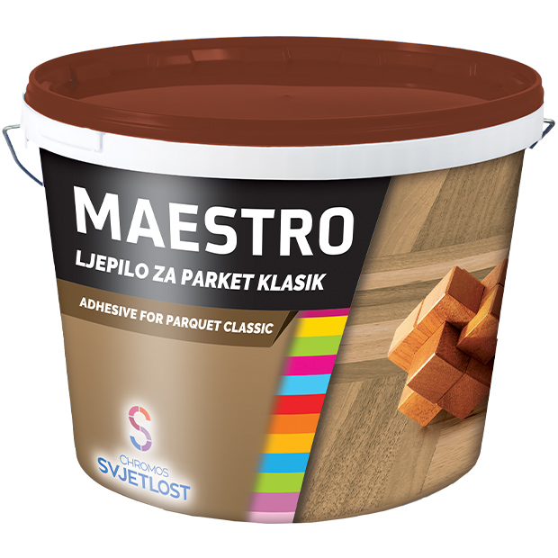 MAESTRO ljepilo za parket – KLASIK na bazi vodene disperzije polivinilacetata za lijepljenje klasičnog parketa na betonske, drvene i slične podloge.