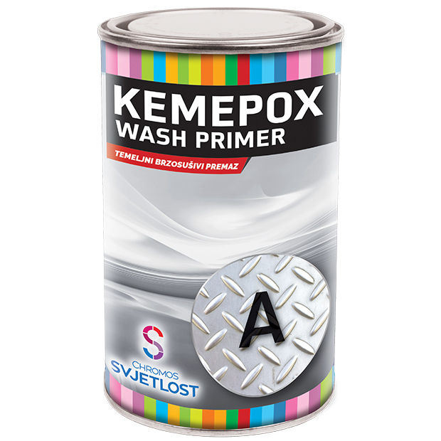 KEMEPOX Wash Primer je dvokomponentni tankoslojni brzosušivi temeljni premaz na osnovi kombinacije polivinilbutiralne, fenolne i epoksidne smole te fosforne kiseline kao aktivatora, koji sadrži protukorozijske pigmente. Odlikuje se odličnom prionjivošću na gotovo sve vrsta metalnih površina i dobrom kompatibilnošću s različitim vrstama premaza. Može se upotrebljavati u različitim sustavima protukorozijske zaštite kao sredstvo za poboljšavanje prionjivosti na metalne površine.