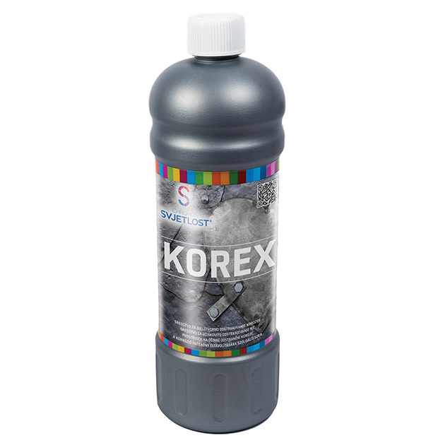 KOREX je višenamjensko sredstvo za djelotvorno odstranjivanje korozije, Koristi se u industriji kao i u domaćinstvima za odstranjivanje korozije sa metalnih površina, koje se dalje obrađuju sa KEMOLUX temeljnom antikorozivnom bojom ili KEMOLUX univerzalnom AK BST bojom, te završnim KEMOLUX lakom.